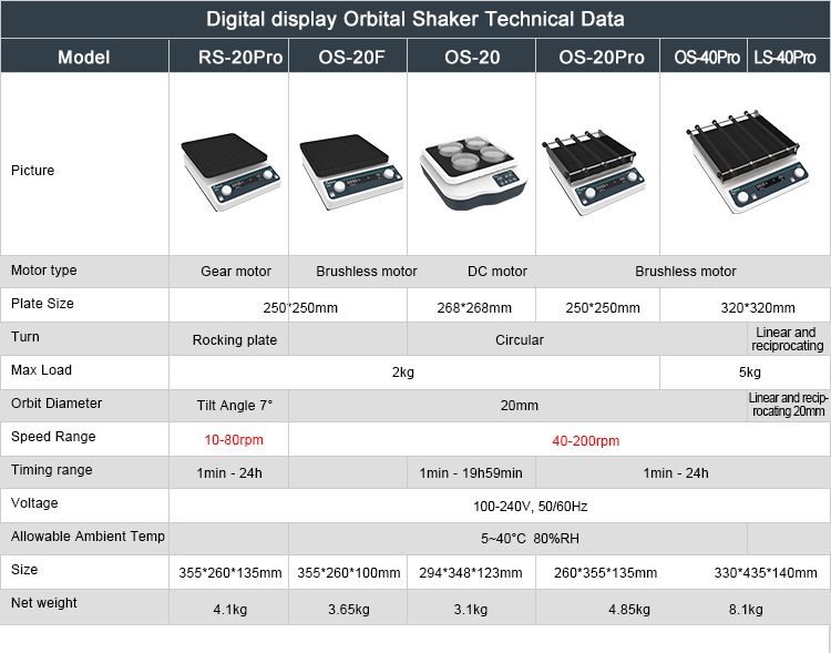 1. Speed: 40-200rpm for all models